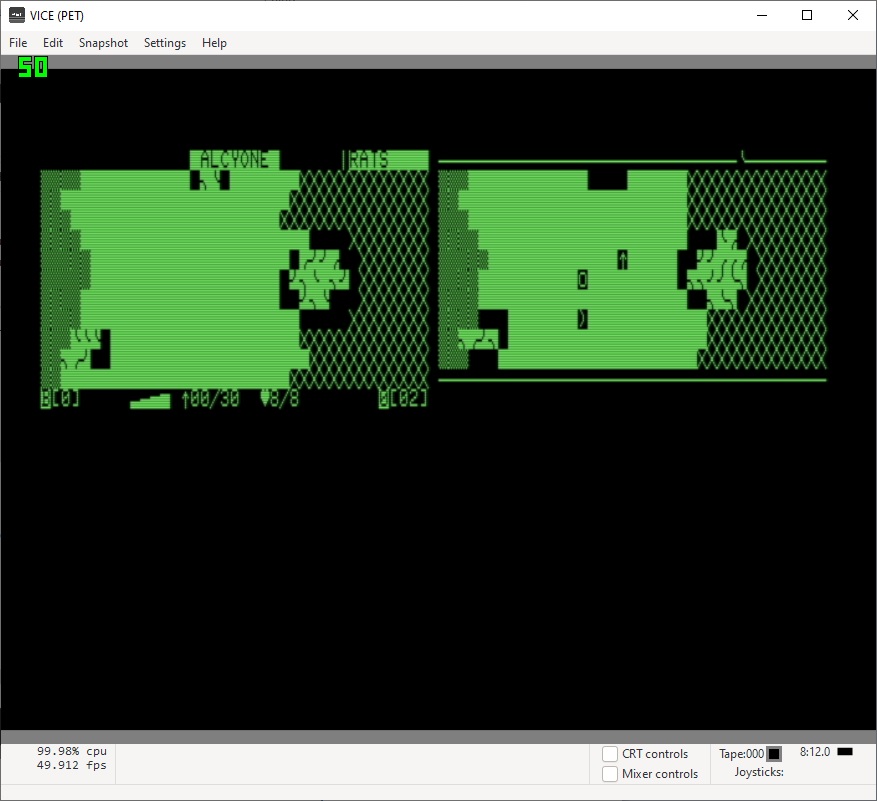 The “standard” dhunterpet.prg can be loaded and ran on an 80-column PET (8032). However, the maps are not displayed properly making the game largely unplayable. There are ways to “convert” an 80-column PET into a 40-column, however most 80-column PETs use a “business” instead of “graphics” keyboard.