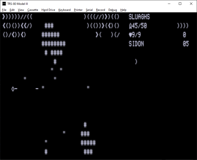 All strings have been converted to TRS-80 Model 3 character codes. Design adjustment made to use all 16-rows for the map (and relocated the OVERLAY content to the area past column 40 on the right). The game is playable, but some map adjustments should be made to better accommodate the 16-row dimension.
