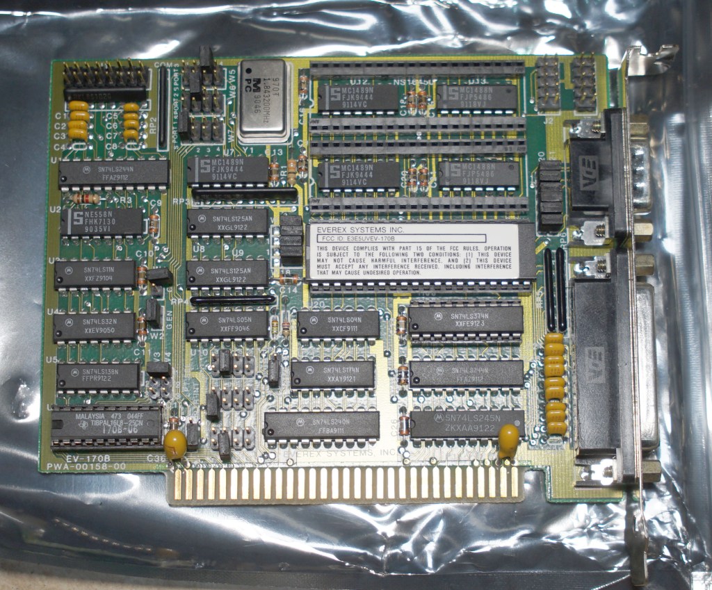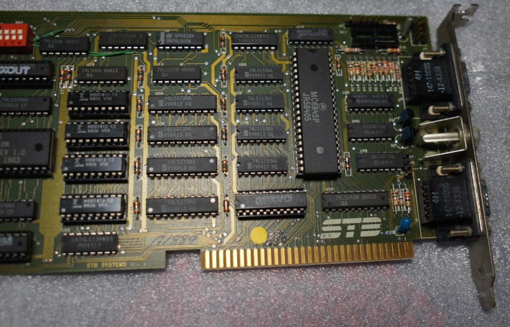 - MDA+CGA video card output (separate 9-pin output, plus Composite output, plus parallel port output)